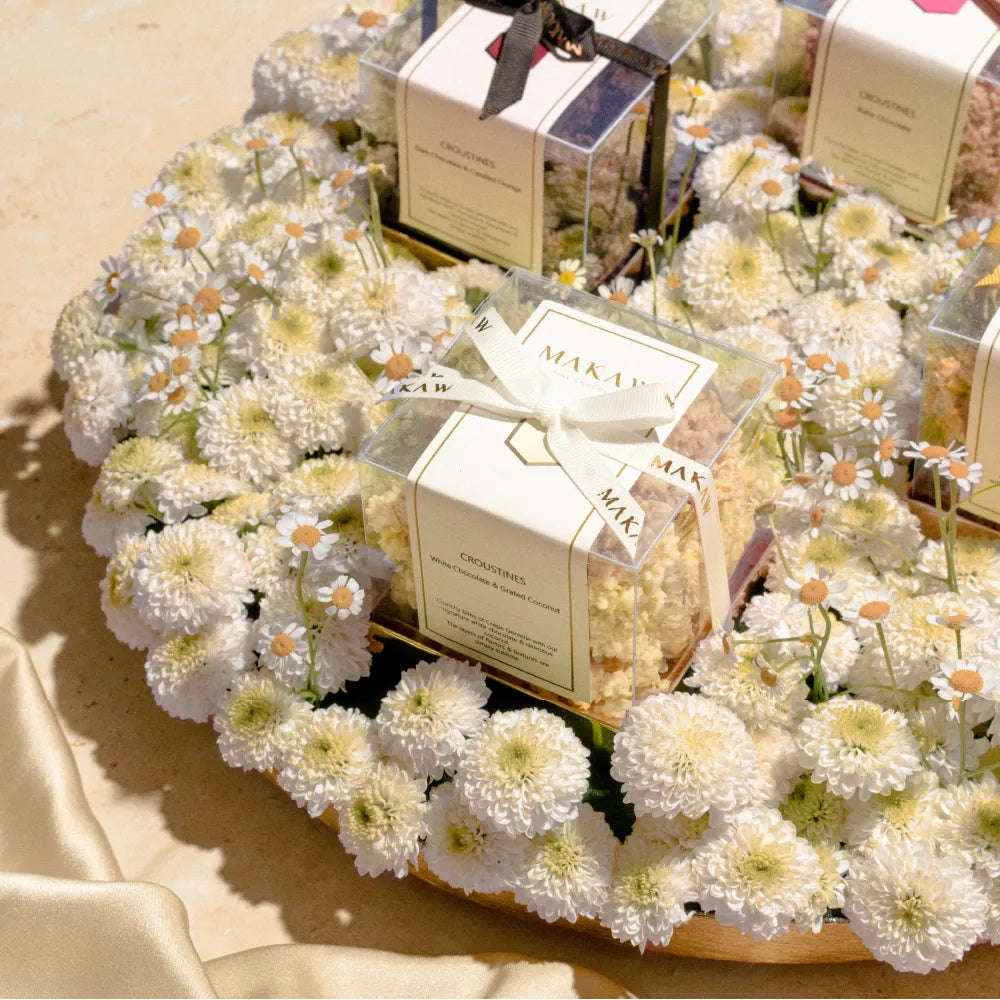 Celestial Blooms | Luxury Flower & Chocolate Gift Tray in Leather Base