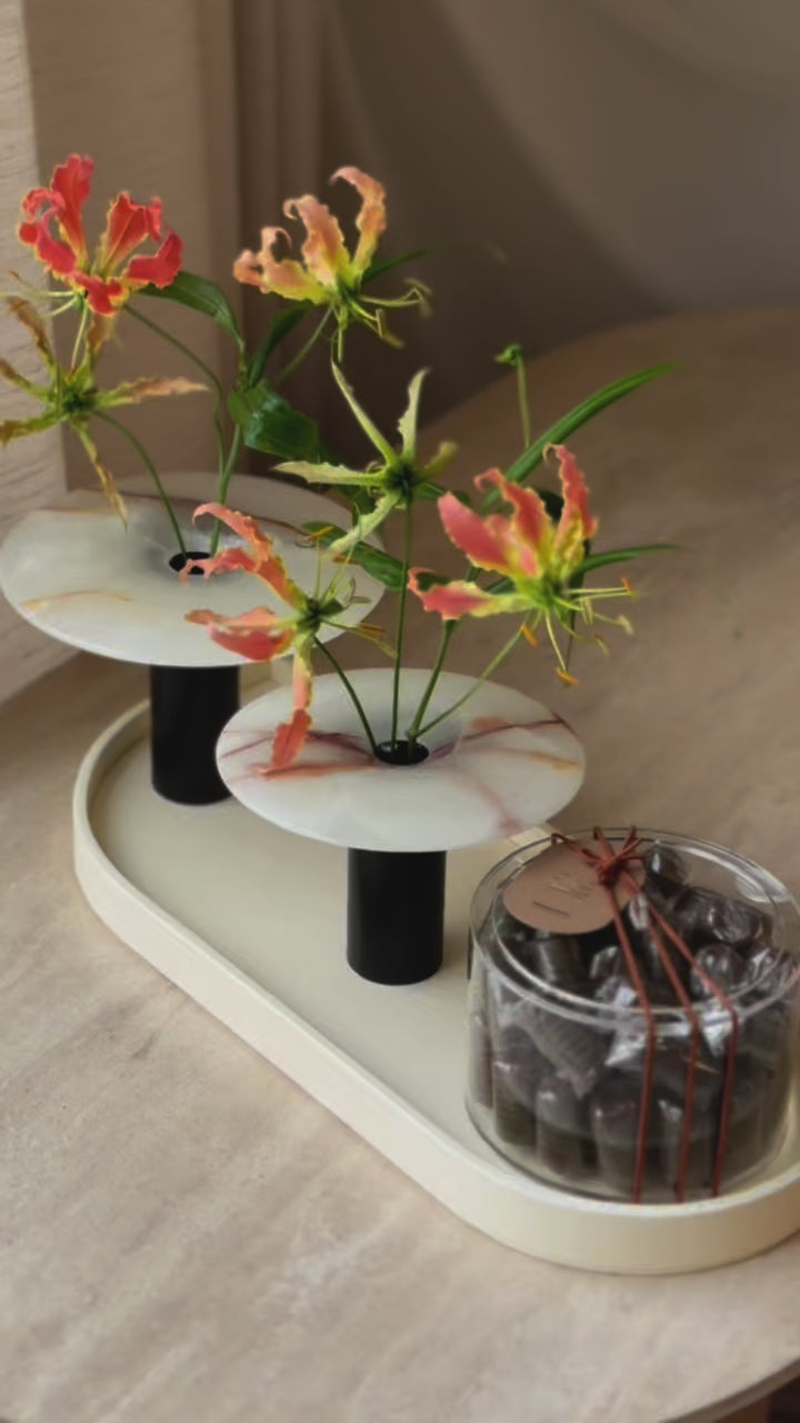 Ramadan - 2 Moons Marble Vases Gift Set - 1KG Chocolates and Flowers